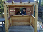 作りました。ウエスタンレッドシーダーで、ログハウス風に刻んでつくリました。