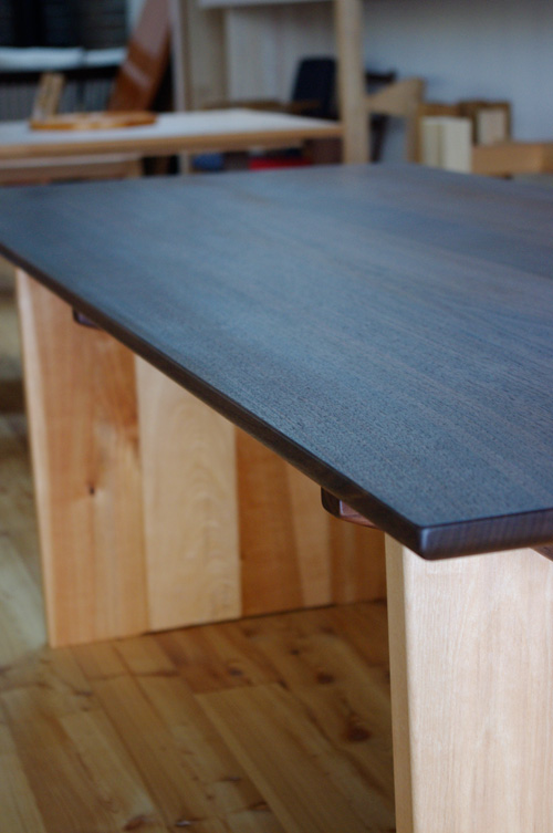 天板は、ブラックウォールナット、脚はミズメです。