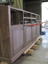 製作中の書棚の扉は、側板の内側に納まるカタチなので、