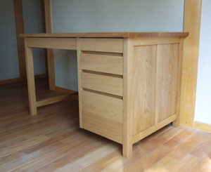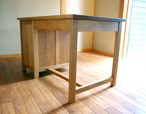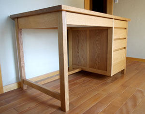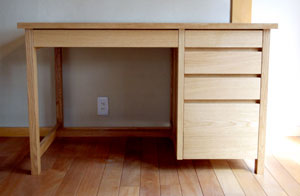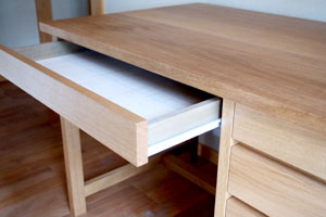 座って邪魔にならないように、抽き出しは極力薄く作りました。