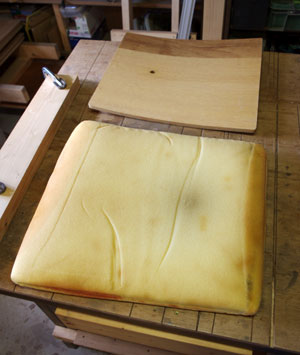 張り地をとって、スポンジを洗って、生地を貼り直します。